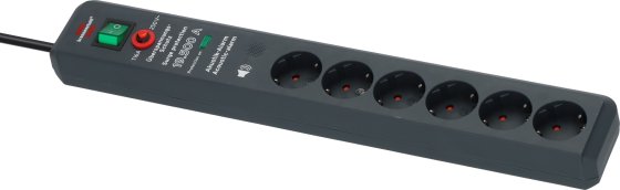 The Secure-Tec 6er multiple socket strip from Brennenstuhl in the color anthracite, with acoustic warning signal and 3m cable impresses with its quality and safety in all areas. It not only has an increased protection against accidental contact, but also convinces with the following features: * Protects valuable equipment from overvoltages with a max. leakage current of up to 19,500 A. * Function control light for overvoltage protection * Socket outlets with increased contact protection in a practical 45° arrangement * Total power max. 16 A/3500 W * Cable length 3 m * Cable designation H05VV-F 3G1.5 * Rated current 16 A