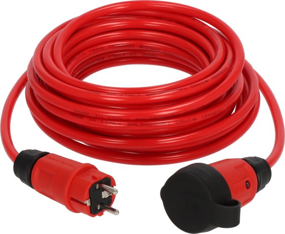The robust BREMAXX®-PUR IP44 Professional Extension Cable with 10m cable length in the colour red is ideal for use on construction sites in accordance with DGUV 203-006 (formerly BGI 608) and for permanent outdoor use. The BREMAXX®-PUR quality cable is extremely abrasion and roll-over resistant. It is also acid- and oil-resistant, weather- and microbe-resistant and cold-resistant down to -40 °C. The plug and coupling are UV-resistant and feature kink protection and a cable seal. The Extension Lead also has the following impressive features: